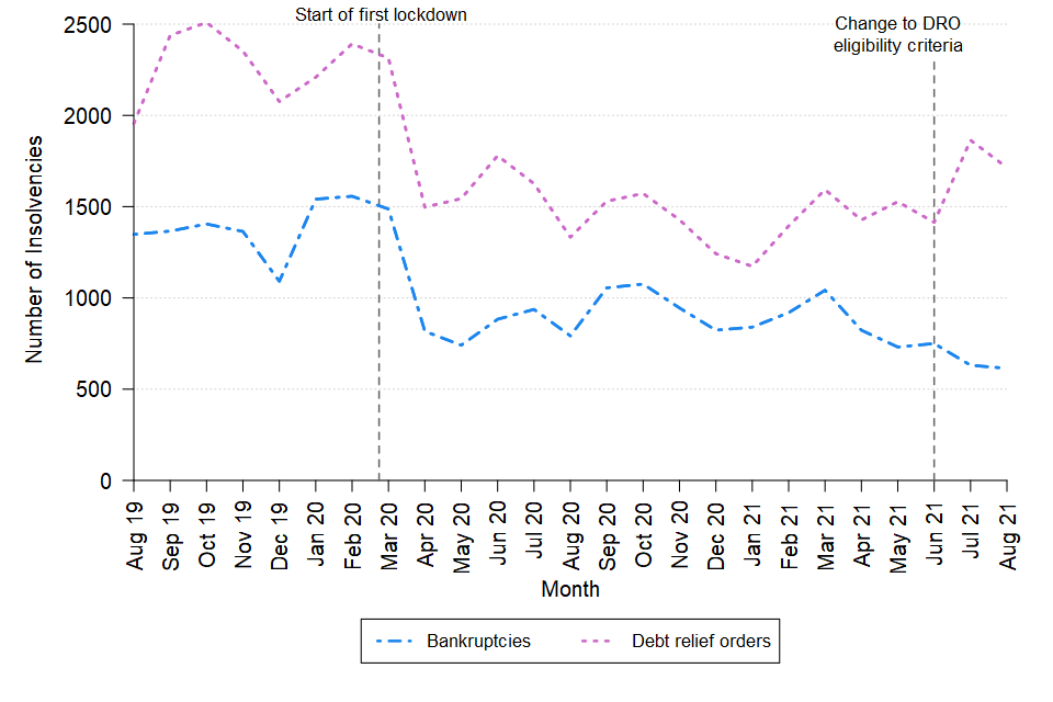 There were 1,714 DROs and 614 bankruptcies in August 2021 in England & Wales.
