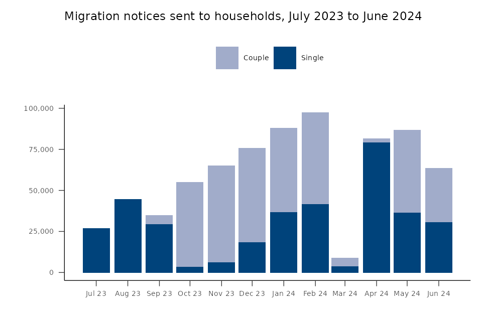 369,220 couple households have been sent a migration notice, representing 48% of migration notices sent to households.