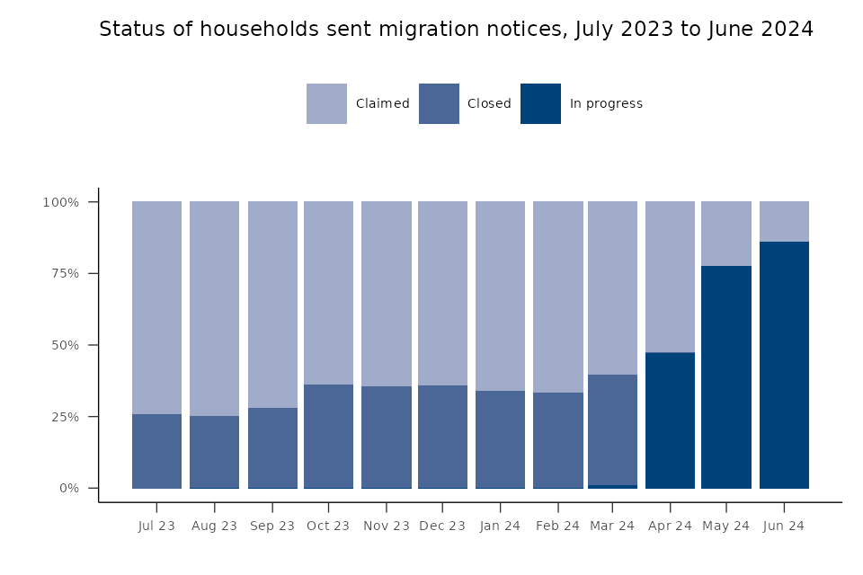 Table 1: Migration Notices sent and claims made to UC between July 2022 and June 2024