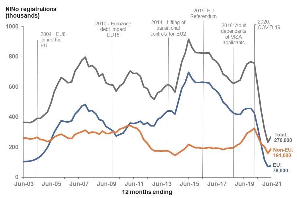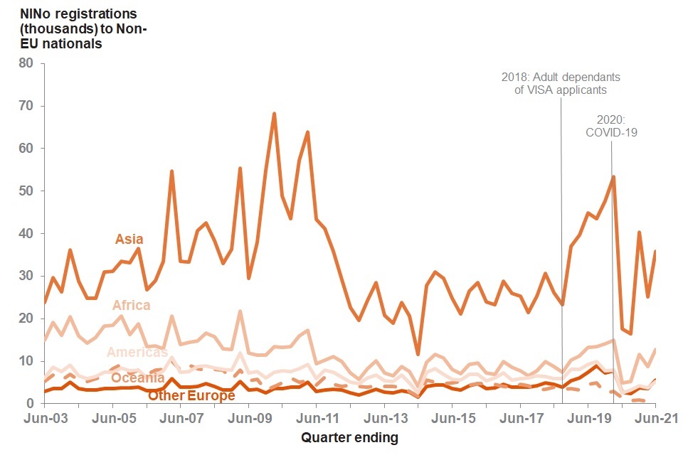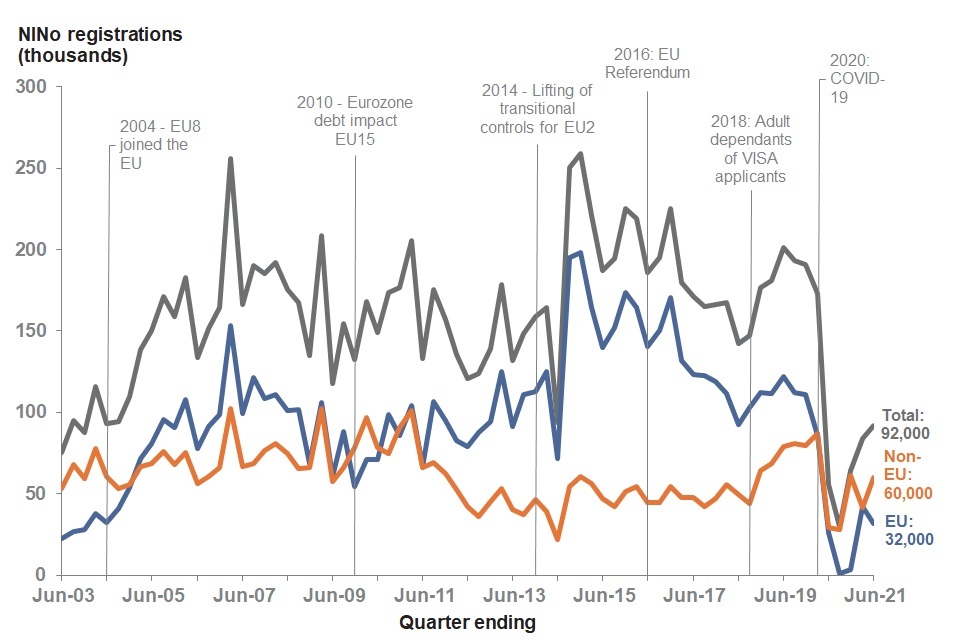 In Q2 2021, there were 60,000 NINo registrations by Non-EU nationals.