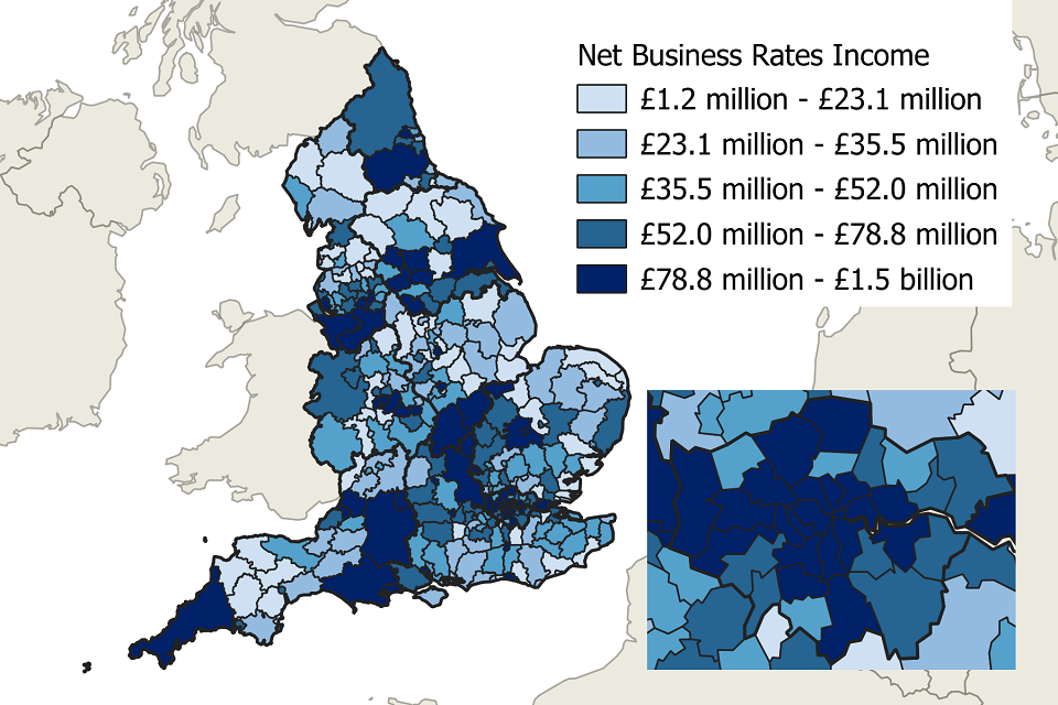 There are data for each local authority in England in the tables accompanying this release covering the amount of business rates income and reliefs granted. Map 1 provides an overview of how net business rates income differs across England.