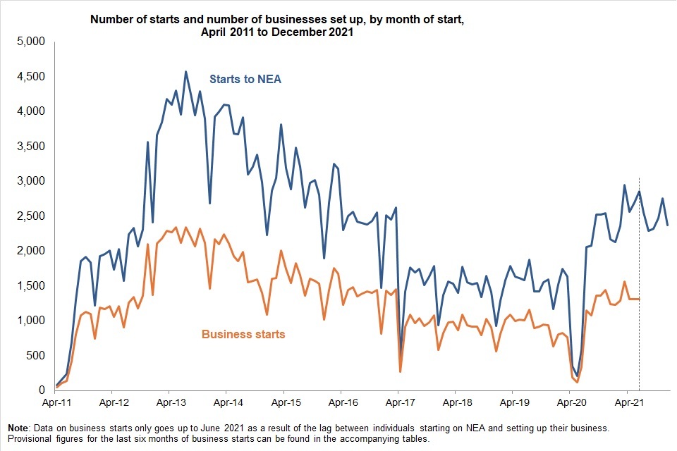 New Enterprise Allowance statistics: April 2011 to December 2021