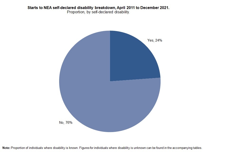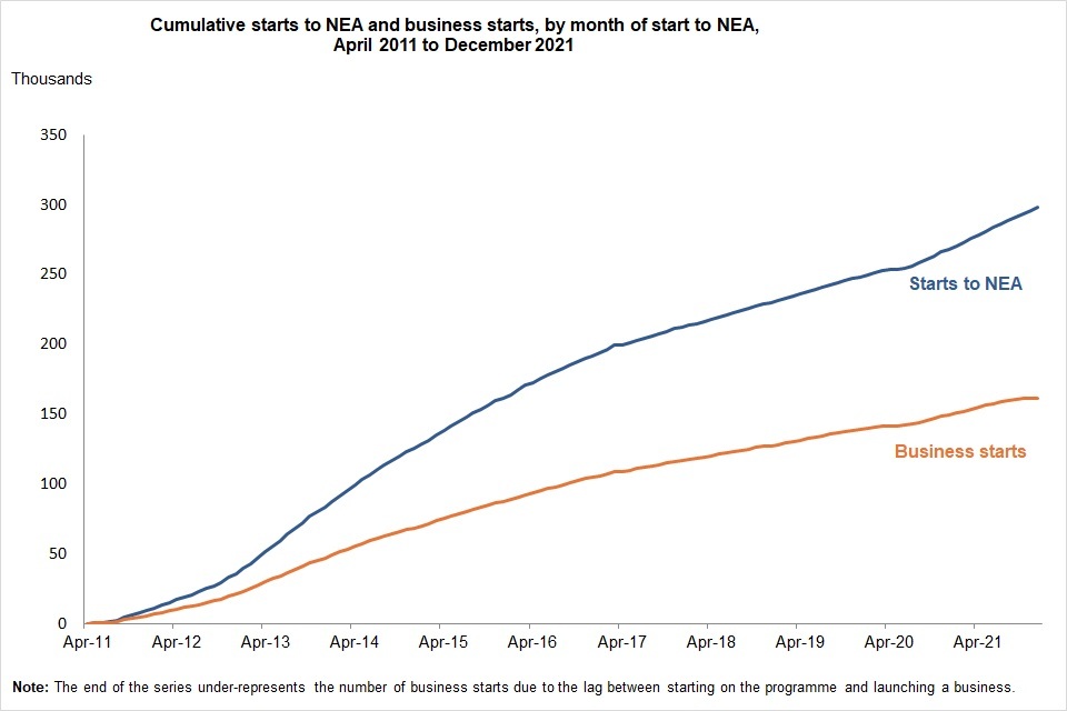 Of those starting on NEA, around 63,000 had a self-declared disability, with around 34,000 of these individuals progressing to set up a business.