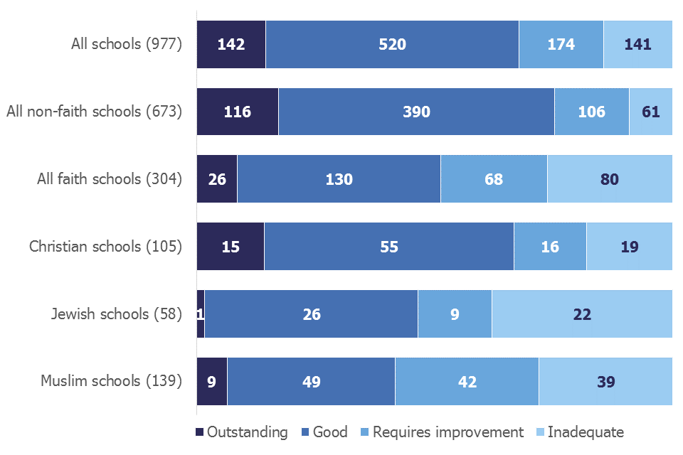 - a sharp decline in inspection outcomes for other independent schools and more specifically faith schools, compounded by the number of faith schools inspected by Ofsted increasing in the period