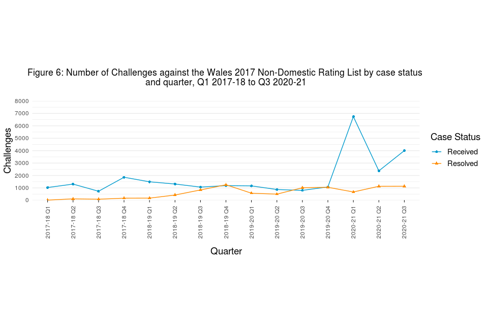 Figure 6 shows that the number of challenges received against the Wales 2017 list increased in the quarter to 31 December 2020. This can be attributed to the COVID-19 pandemic and coincided with government-imposed restrictions on business.