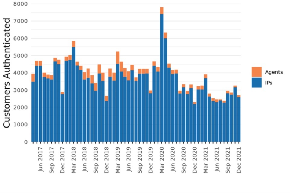 Figure 1: Customer registrations by customer type and month, Apr 2017 to Dec 2021