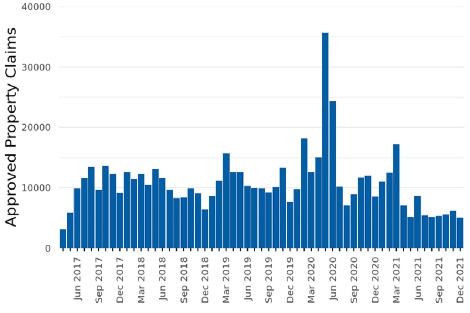 Figure 2: Approved property claims by month, Apr 2017 to Dec 2021