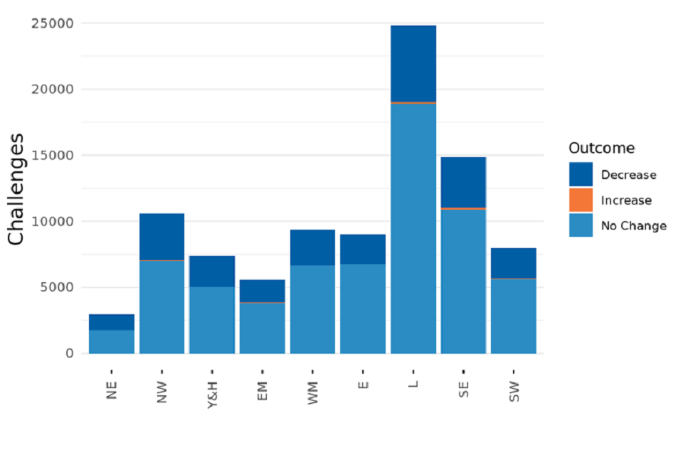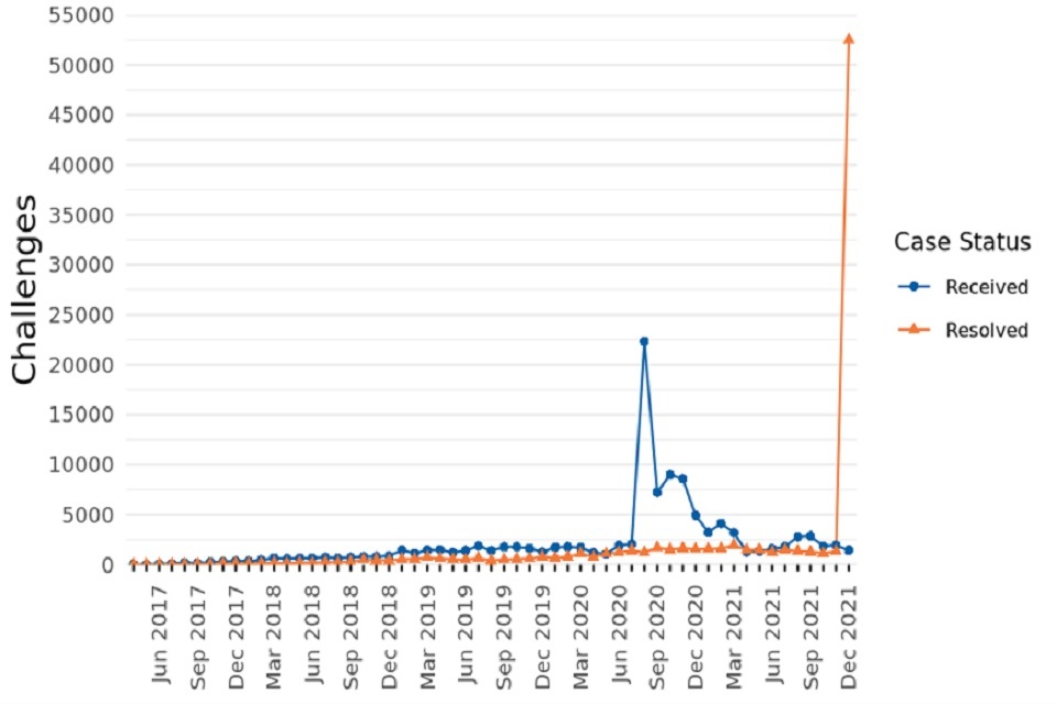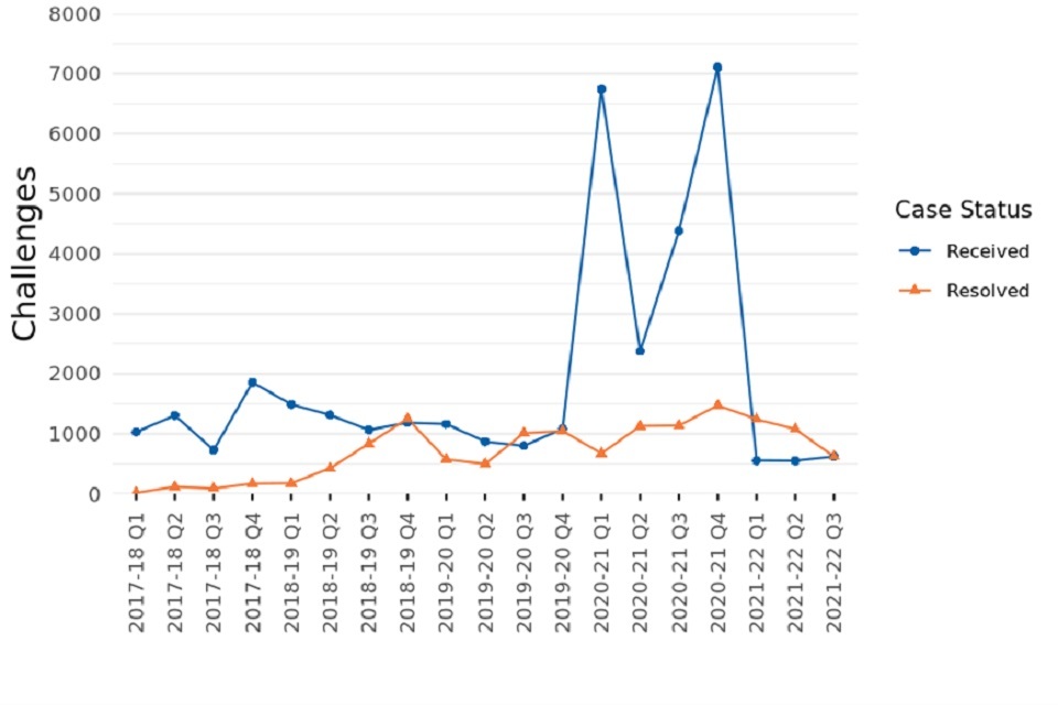- Registered 117,370 challenges under the Check, Challenge, Appeal (CCA) system. 55,570 of these challenges were made as a result of Covid-19 restrictions being imposed. Additional breakdowns of these figures will be available in the next Challenges and Changes release in late April 2022.