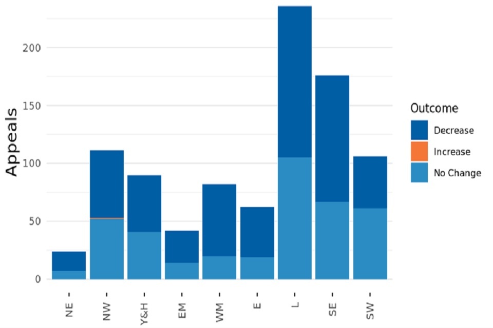Figure 7 shows the number of resolved CCA Challenge cases by geographical region and their outcome. The large increase in Challenges resulting in no change is attributable to COVID-19 MCC bill being passed through Parliament in December 2021.