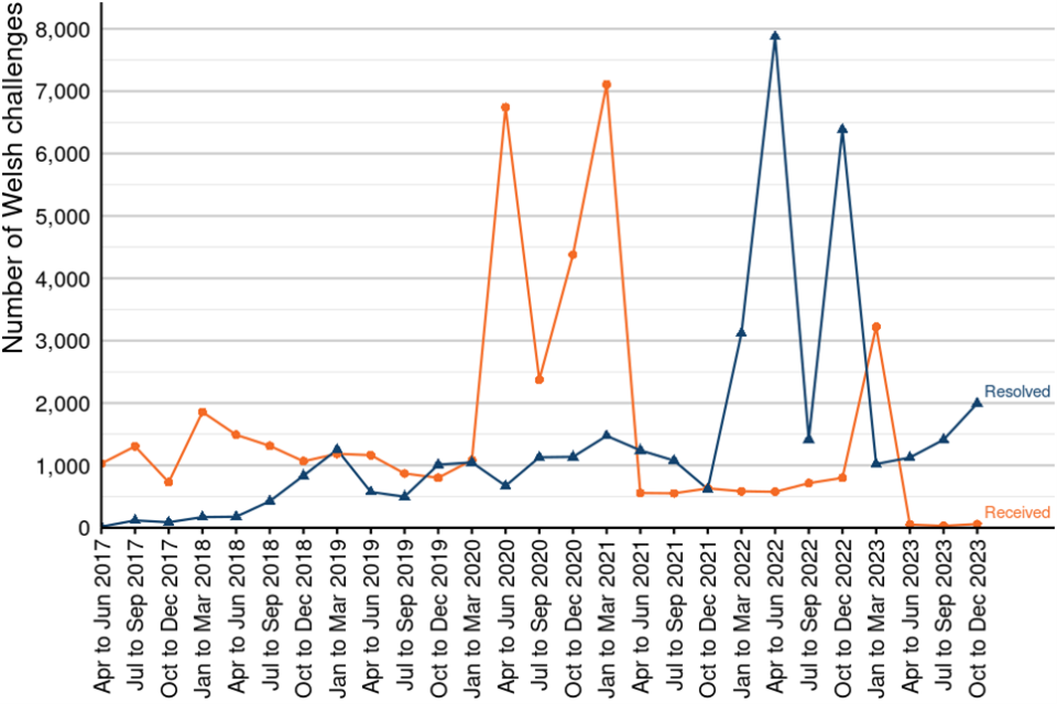 Figure 9: Non-CCA challenges in Wales against the 2017 rating list from 1 April 2017 to 31 December 2023