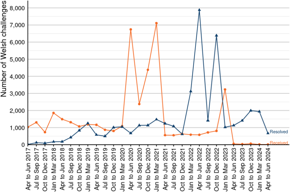 Figure 10: Non-CCA challenges in Wales against the 2017 rating list from 1 April 2017 to 30 June 2024