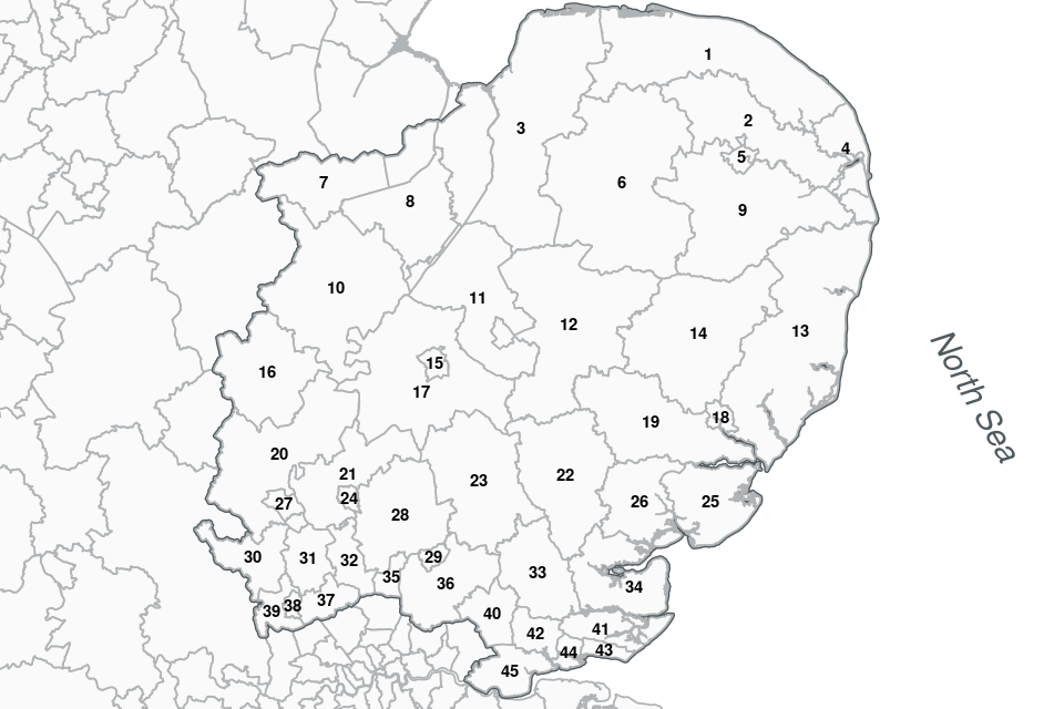 | 47 | Wealden | 4.1 | 28.2 | 10.2 | 6.7 | 13.3 |