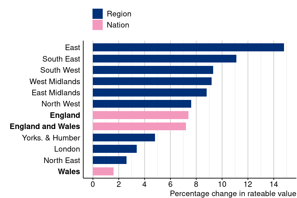 rateable value in the East region saw the largest increase of any region in England, with an increase of 14.8%