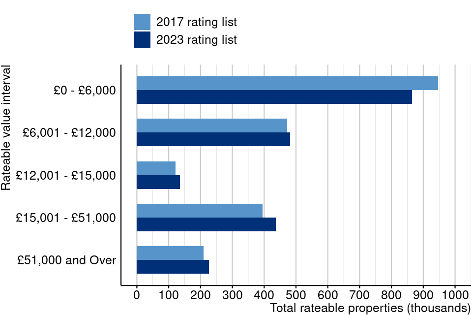 - Change in rateable value from 2017 to 2023 local rating list by property type for England and Wales (Tables 5.0 to 5.2)