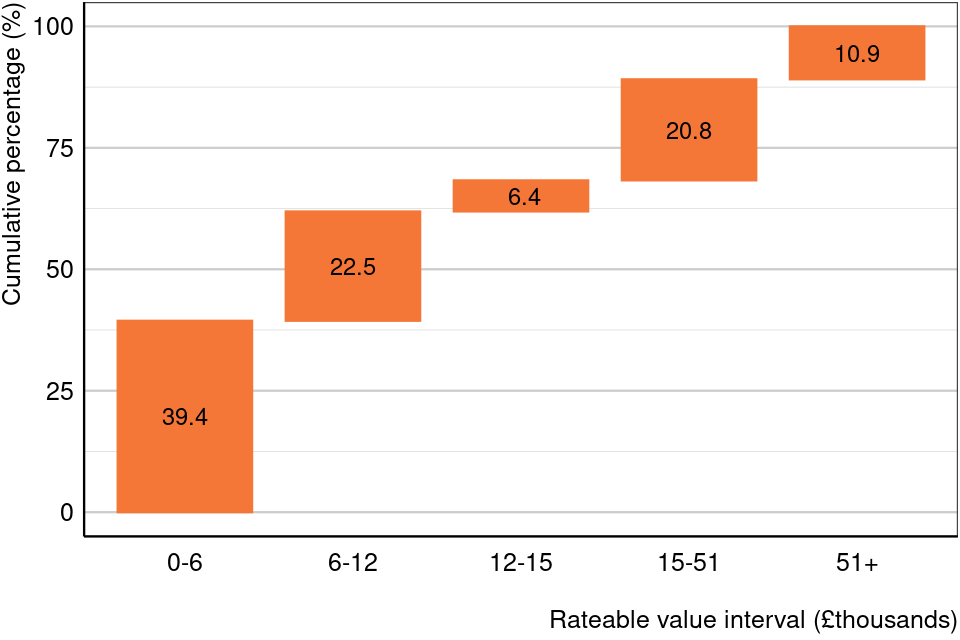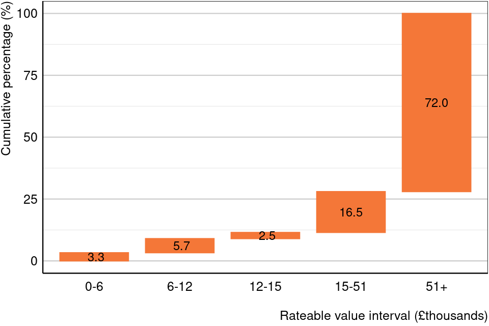 This section breaks down how rateable properties and rateable value are distributed across different rateable value intervals.