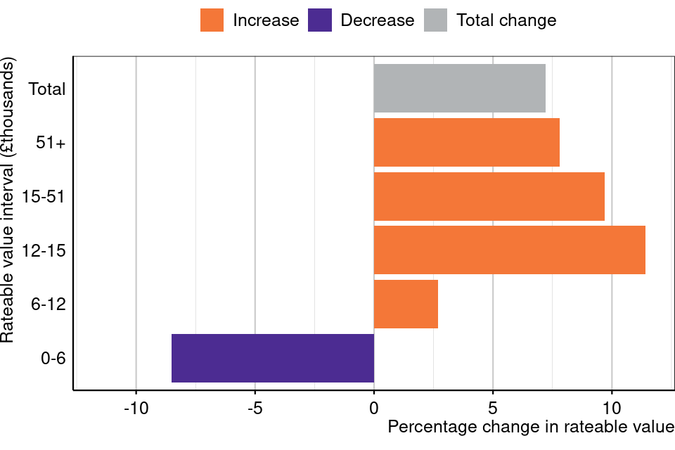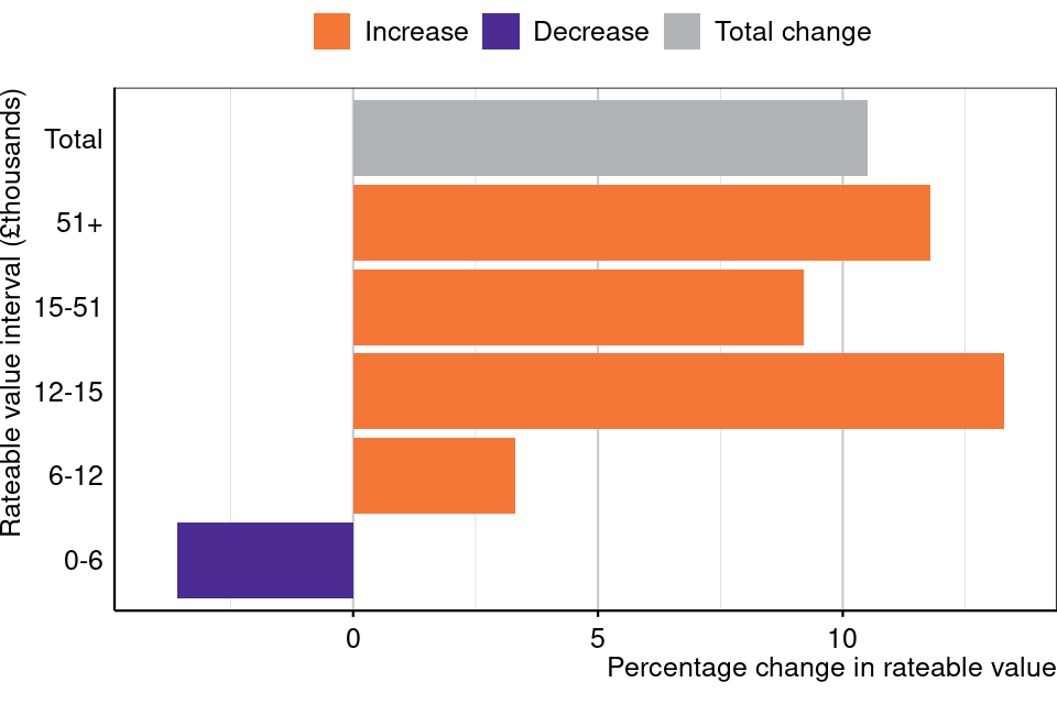 The percentage change in rateable value also varies by region.
