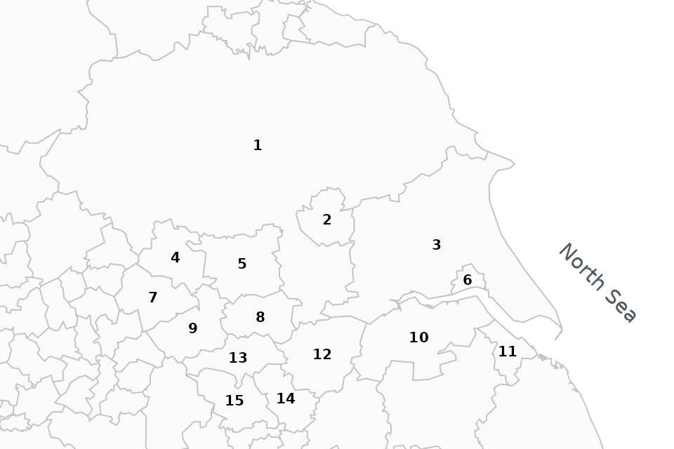 | 1 | Northumberland UA | 7.7 | 22.1 | 15.3 | 20.8 | 18.0 |