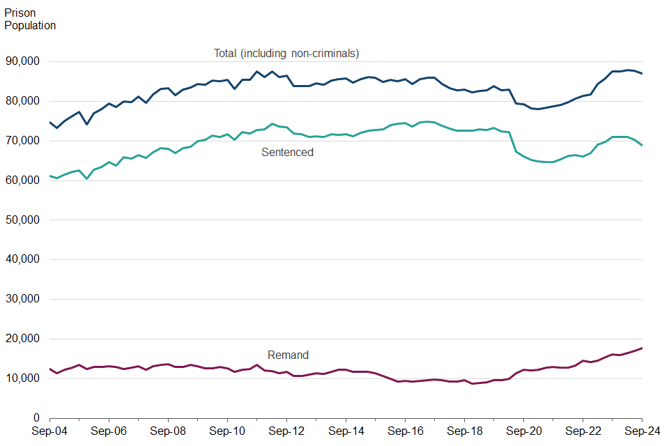 The prison population stood at 86,966 on 30 September 2024.