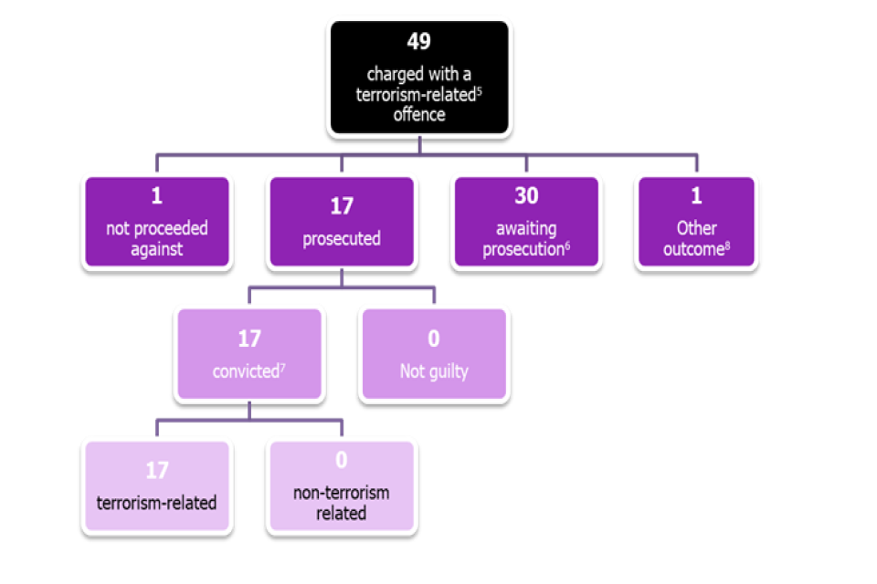 Figure 2.5 shows the outcomes following a charge for a terrorism-related offence.