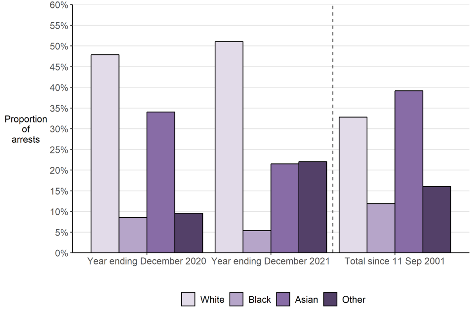 Operation of police powers under the Terrorism Act 2000 and subsequent legislation: Arrests, outcomes, and stop and search, Great Britain, quarterly update to December 2021