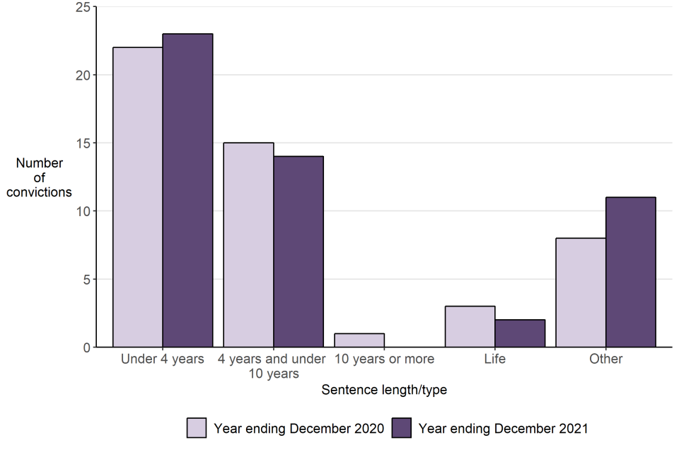 Figure 2.5: Outcomes following a charge for a terrorism-related offence, year ending 31 December 20211,2,3,4, Great Britain