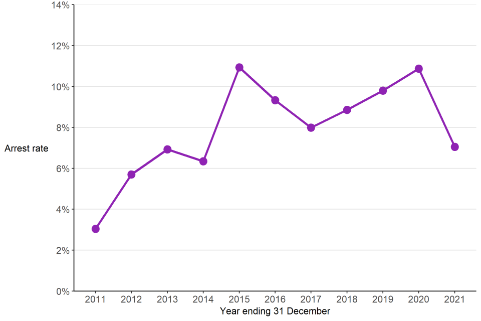 A flow chart summarising the Arrests and outcomes section of this release can be found in Annex A.
