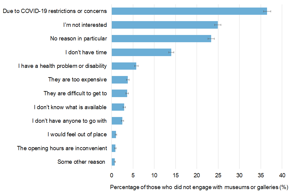 Figure 1.7: Barriers to physical arts engagement (reasons given for not engaging) in the previous 12 months, England: October to December 2021