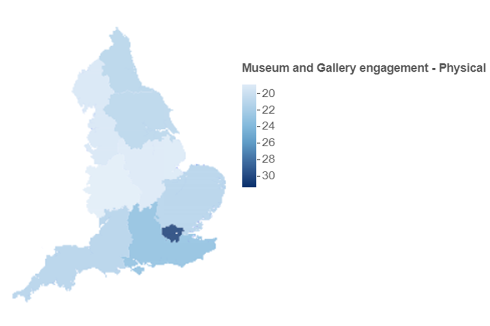 The respondent was asked if they had visited a museum or gallery in person in England in the last 12 months. There was not a specific online engagement question for a museum or gallery activity. Some questions about museum online engagement were included in the heritage online engagement question above.