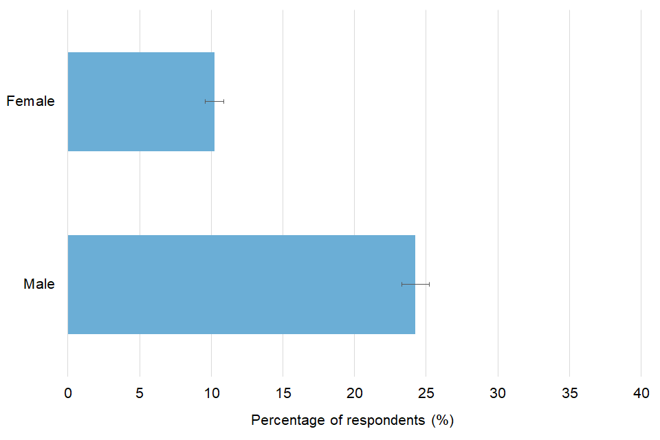 Men[footnote 4] were less likely than women to report having engaged with the library physically at least once in the previous 12 months – 16% for women compared with 13% for men. This was similar for digital library engagement (13% for women compared to 11% for men).