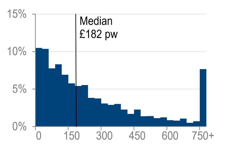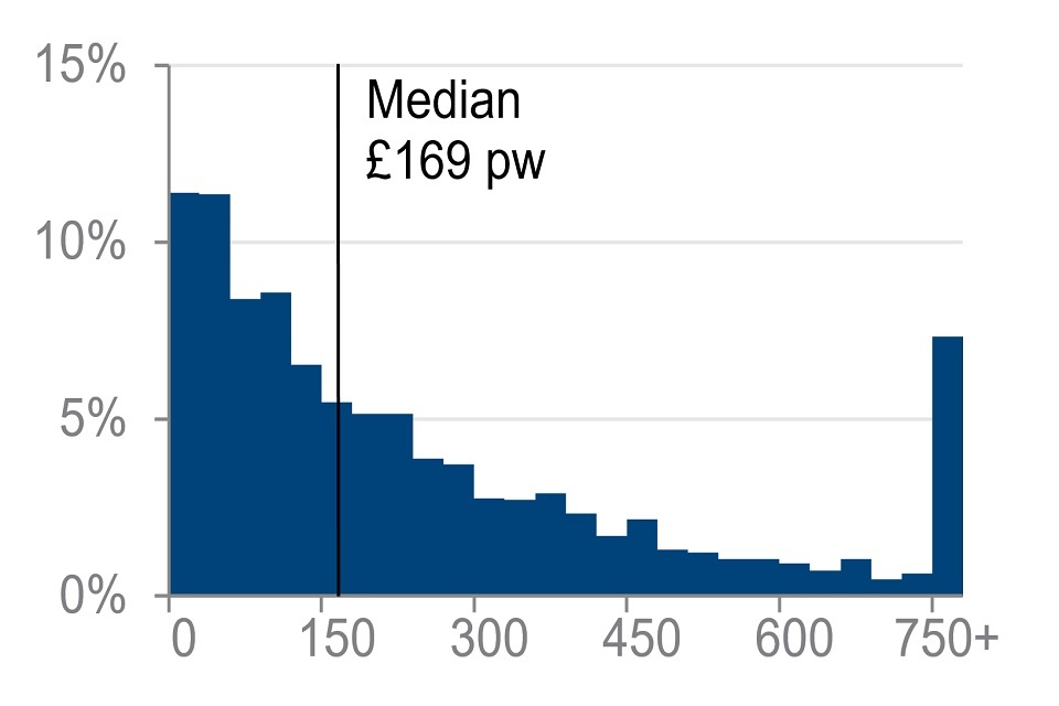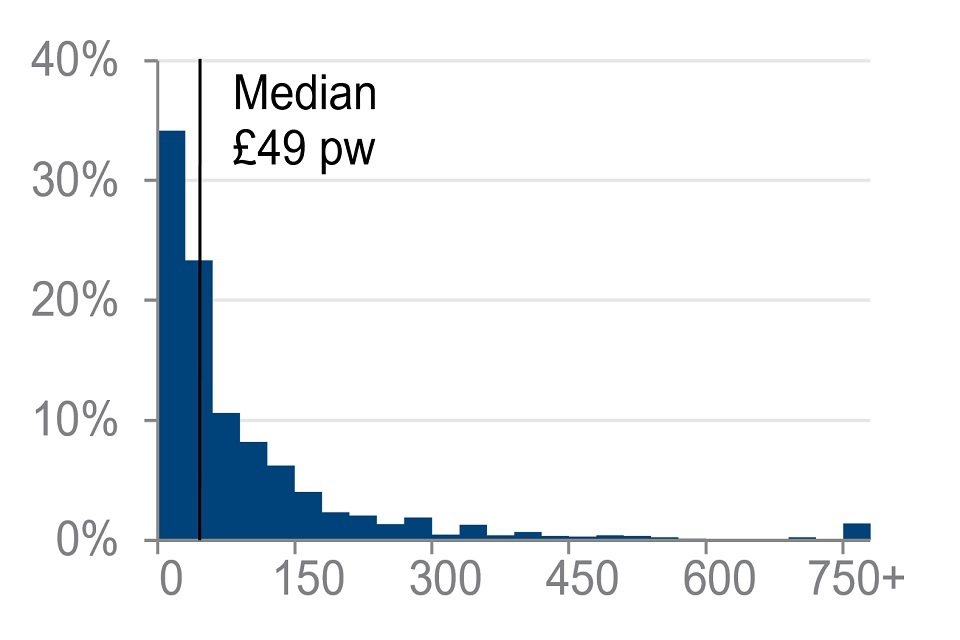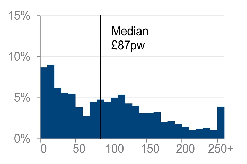 Distribution of income from selected income sources for all pensioners in receipt, financial year ending 2020 (£ per week)