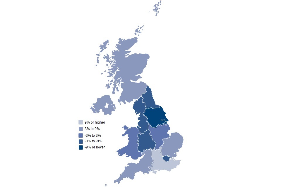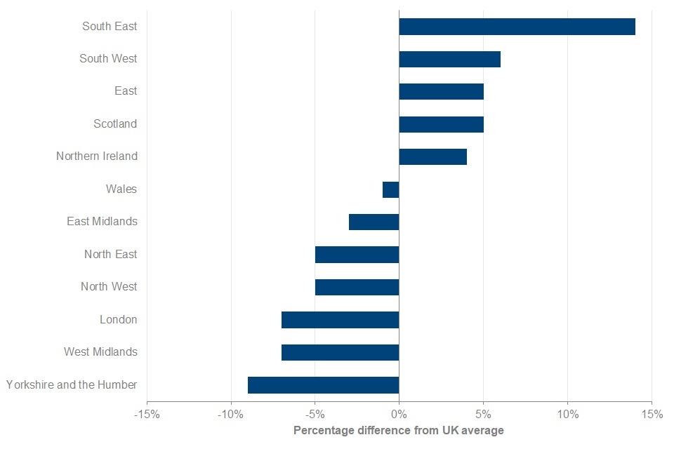 Differences between regions are likely to be associated with demographic and economic variations, including housing costs.