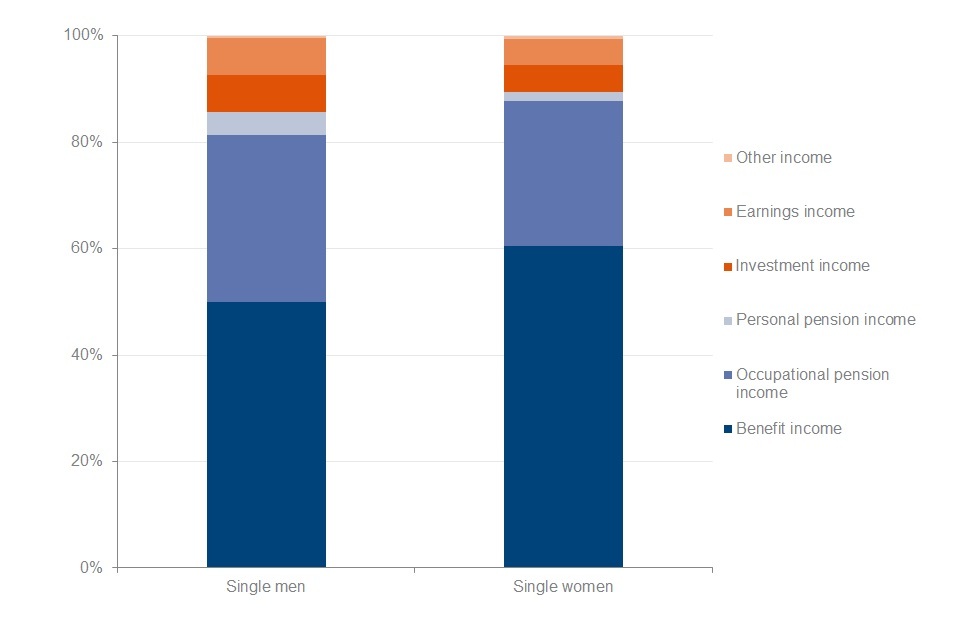 Thirty-one per cent of total gross income for single men came from occupational pensions. For single women, this was 27%.