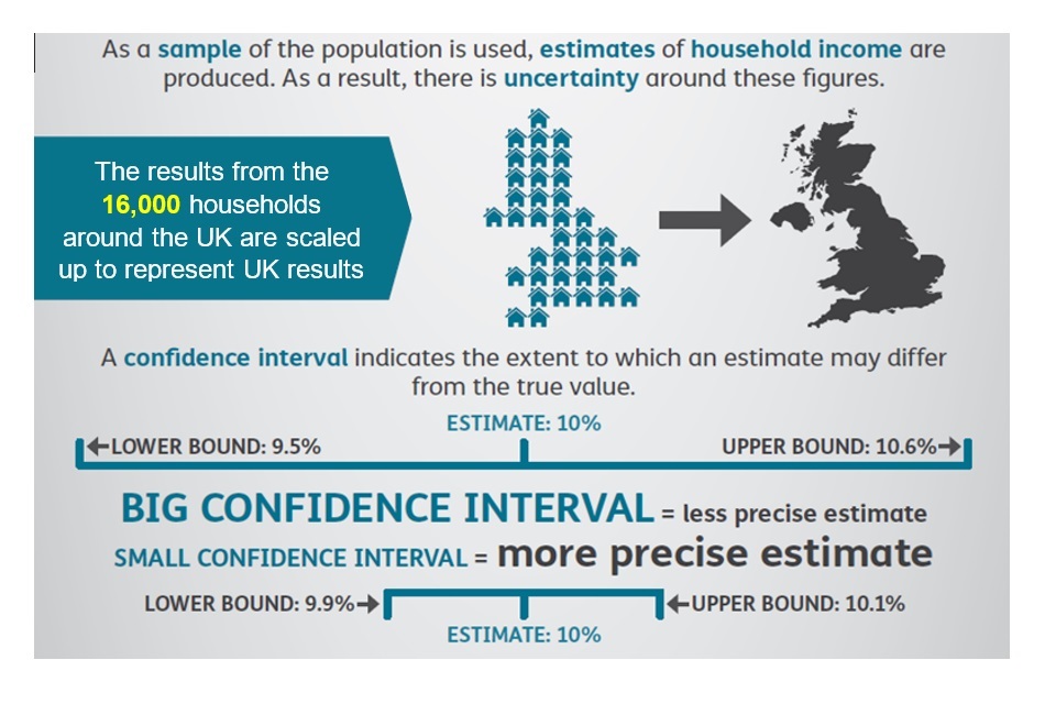 Confidence intervals are calculated for a wide range of estimates using a bootstrapping approach (see ‘Measuring the size of sampling error’ below). These measures of uncertainty indicate whether differences between demographic groups and changes between years are likely to be real differences or caused by sampling error.