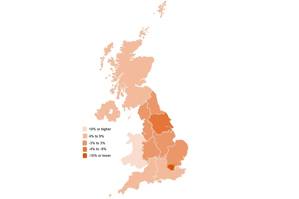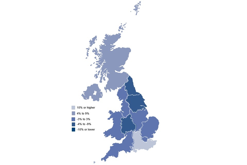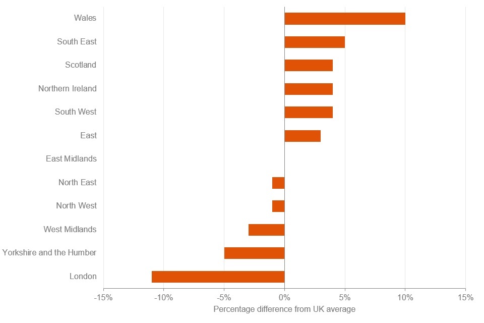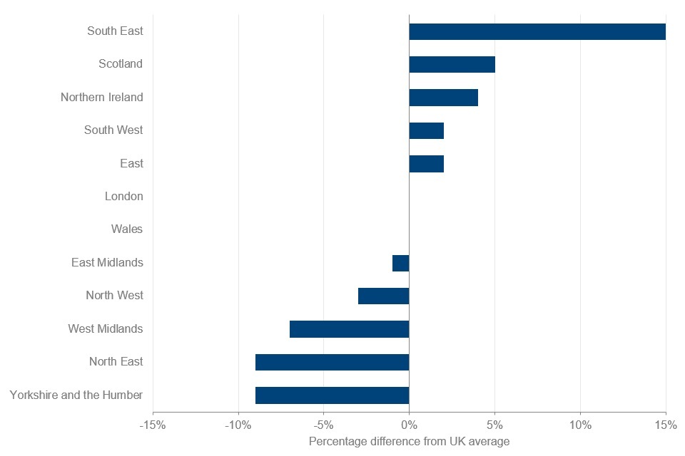 Differences between regions are likely to be associated with demographic and economic variations, including housing costs.