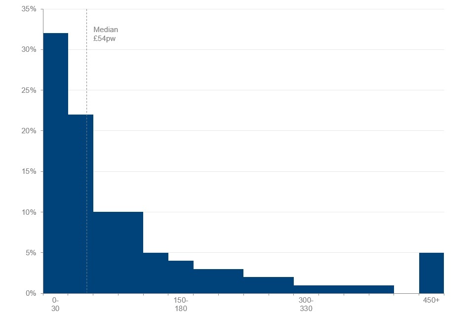 Distribution of income from selected income sources for all pensioners in receipt, FYE 2022 (£ per week)