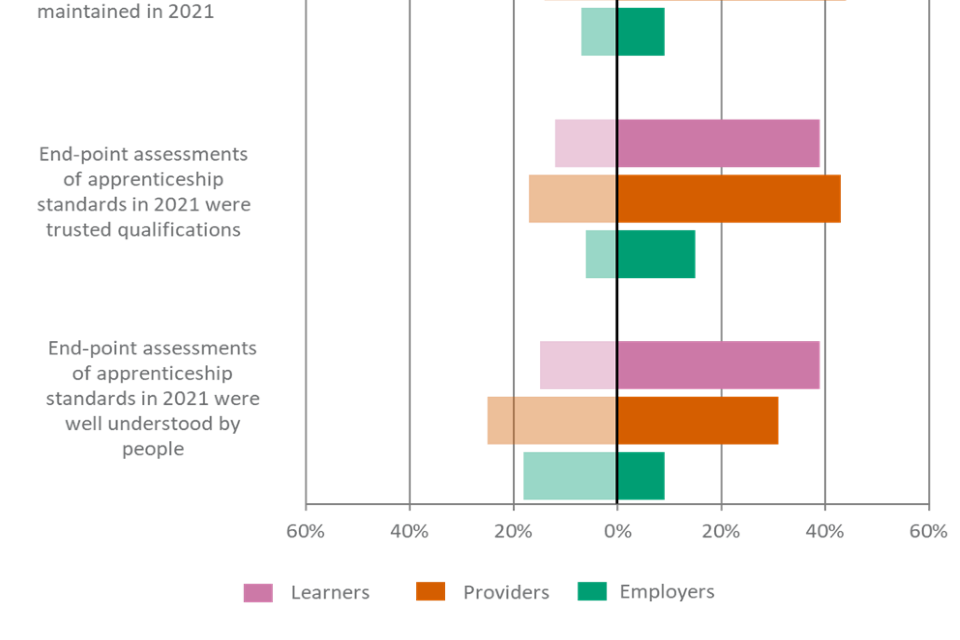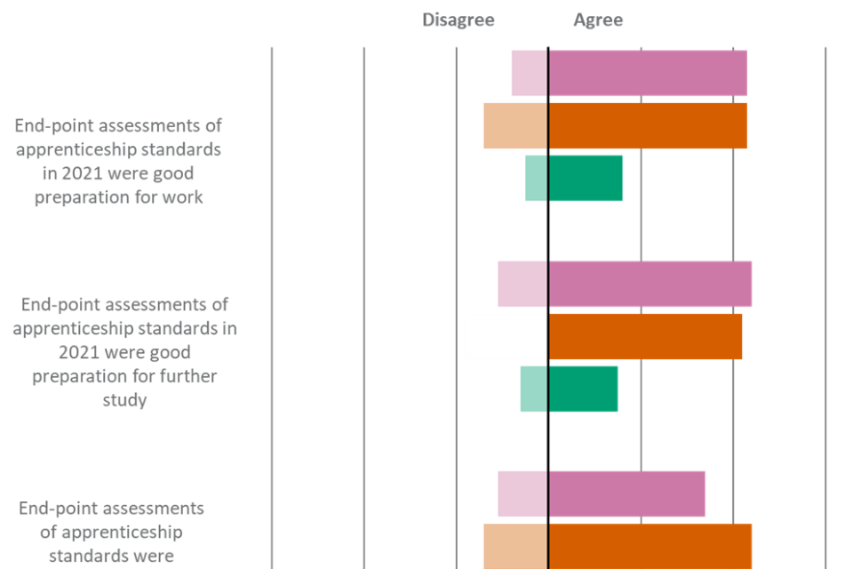 | End-point assessments of apprenticeship standards in 2021 were good preparation for work | 16% | 5% | 43% | 14% | 43% | 8% |