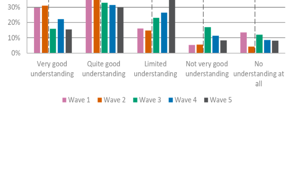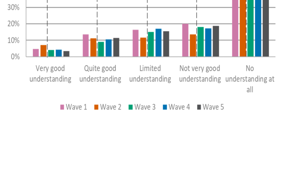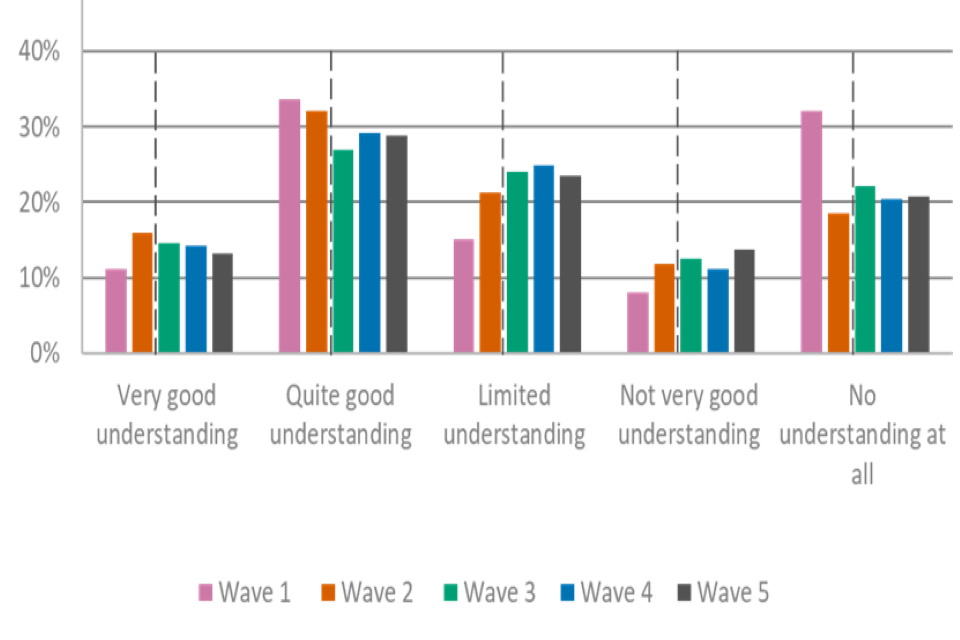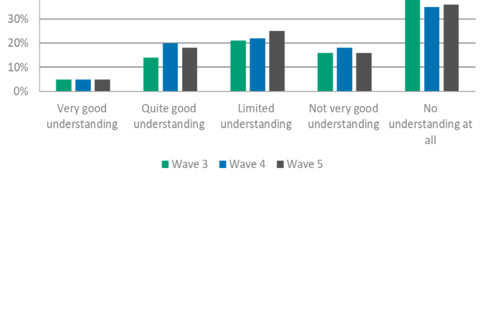 Understanding of apprenticeship EPAs was higher among the provider group in comparison with employers, with three-fifths (58%) of the provider group reporting having a very or quite good understanding of these. This was comparable with wave 4 (61%).
