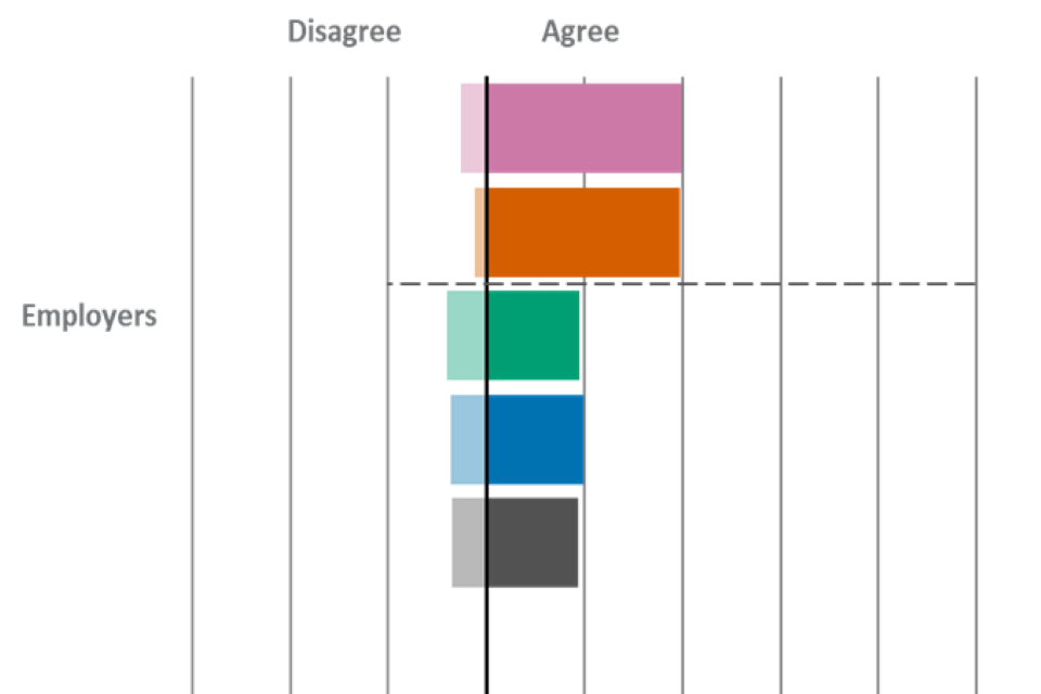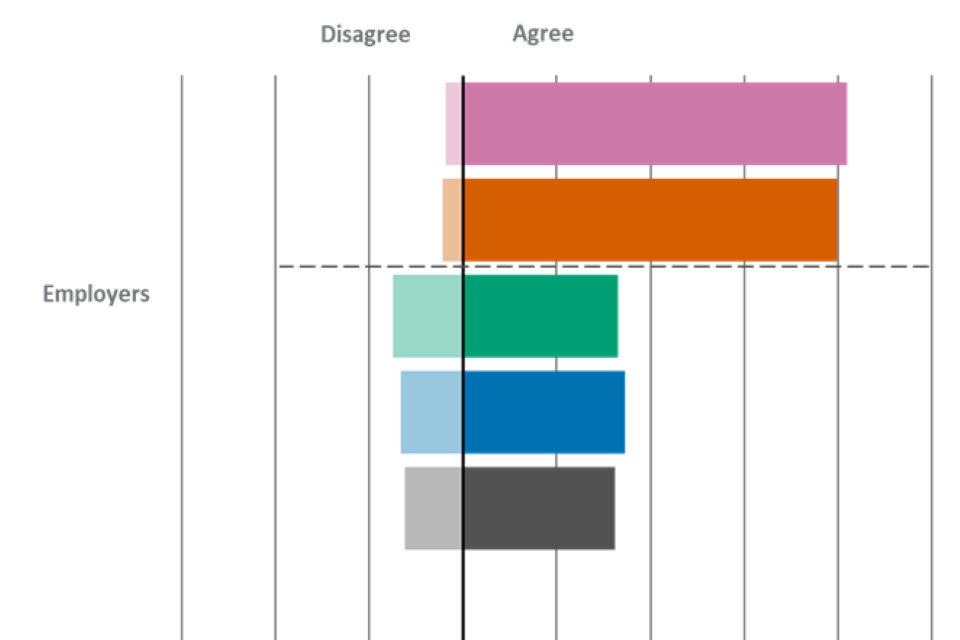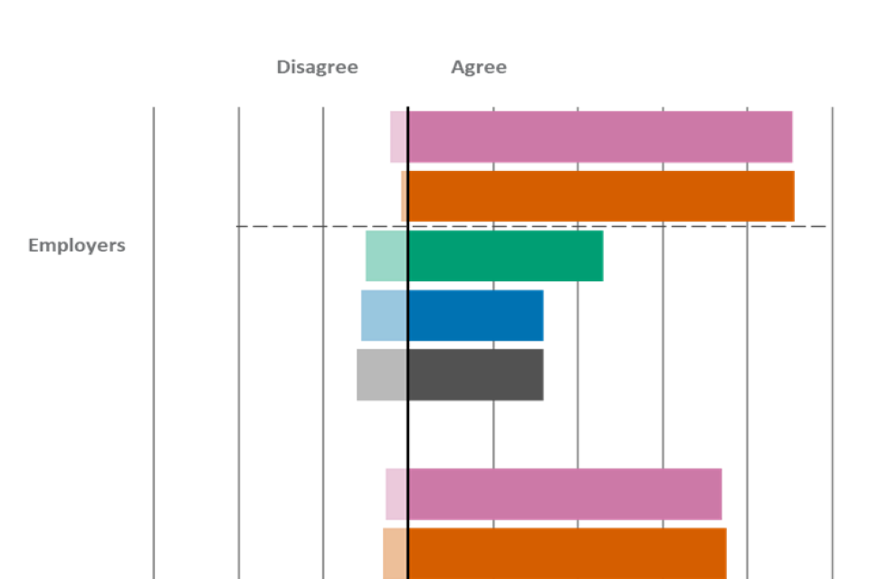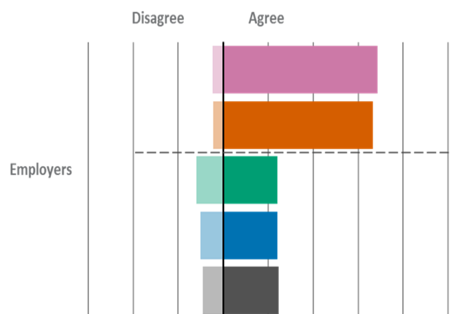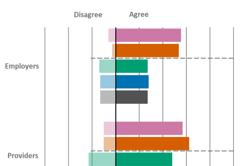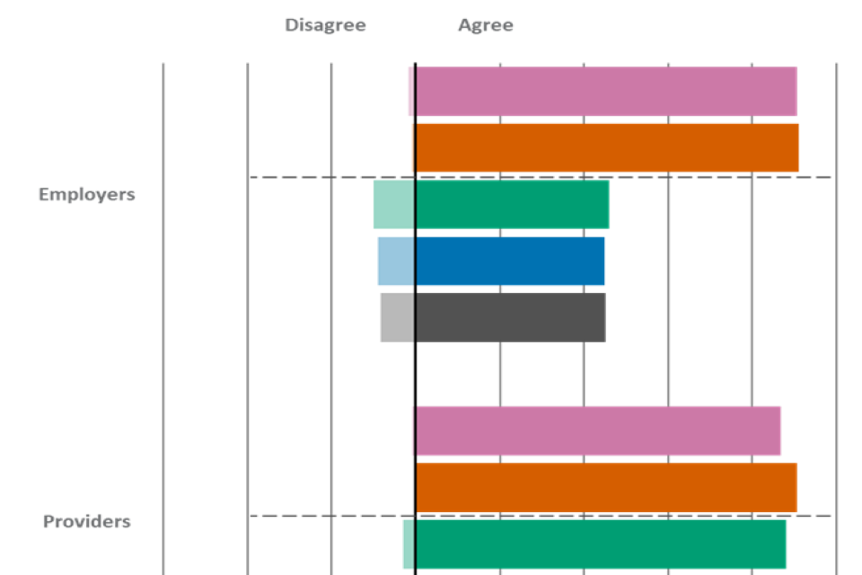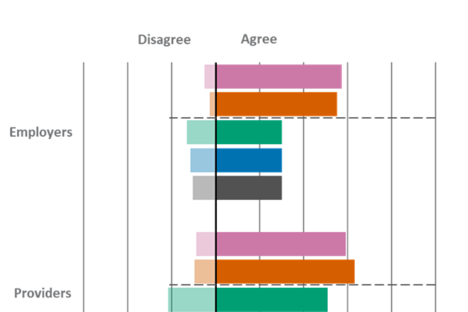 | Statement | Employers - Agree | Employers - Disagree | Providers - Agree | Providers - Disagree | Learners - Agree | Learners - Disagree |
