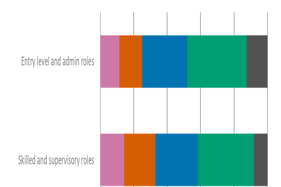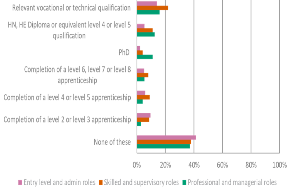 | Qualification | Professional and managerial roles | Skilled and supervisory roles | Entry level and admin roles |