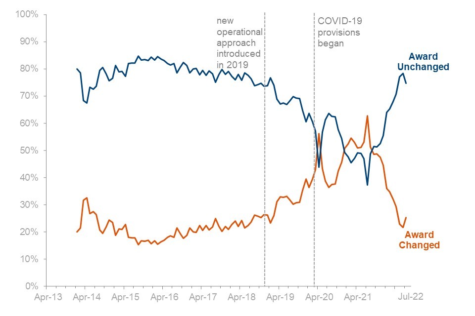 Award rates for all claims (excluding withdrawn cases) over the period August 2017 to July 2022 (last 5 years) show that: