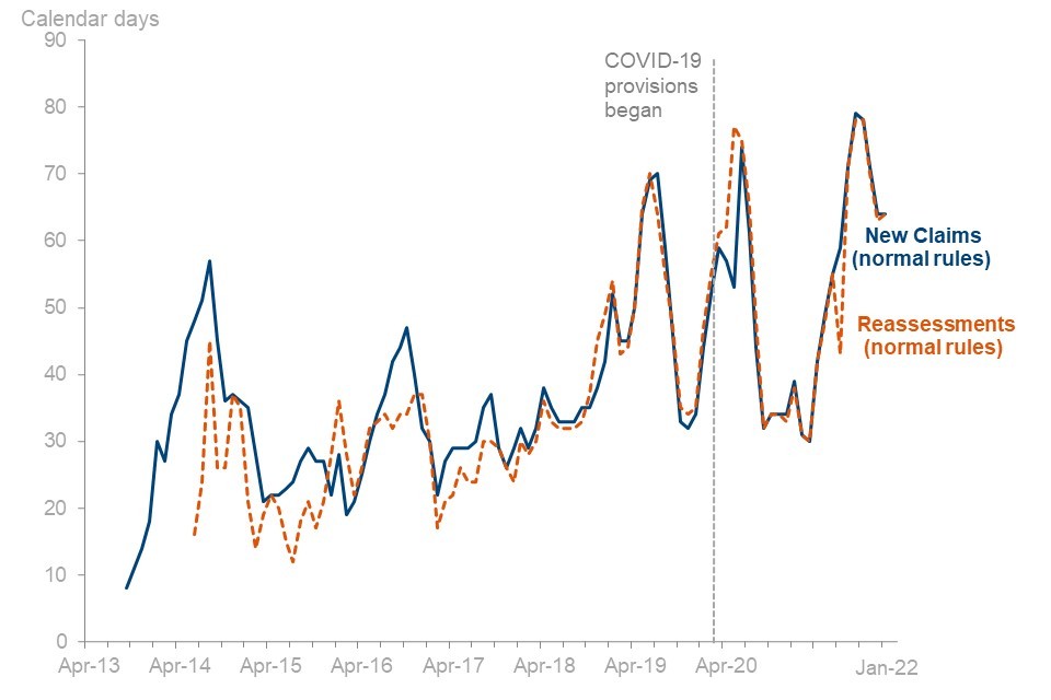 - clearances show even higher levels of increase for new claims (58%) and changes of circumstance (41%) when comparing January 2022 to January 2021, though planned award review clearances are 37% lower and DLA reassessment clearances are only 2% higher