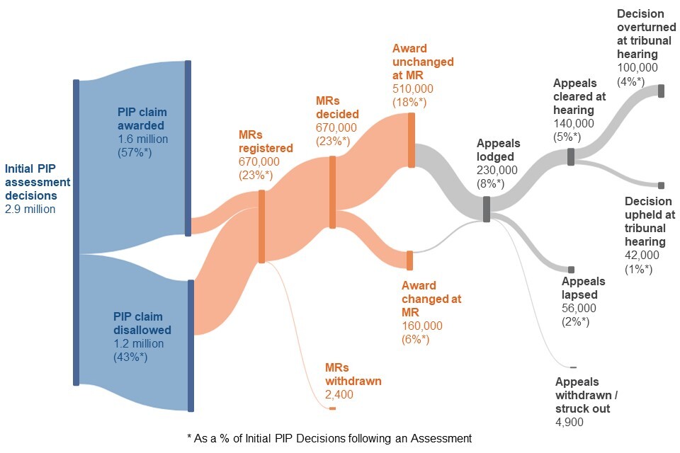 - customer journey statistics (tracking of initial decisions following a PIP assessment and decisions following an AR or CoC through to MR and appeal)