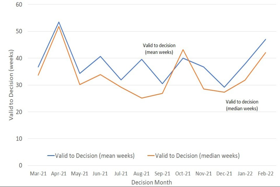 Figure 5: Mean and Median Time to Decision; March 2021 to February 2022