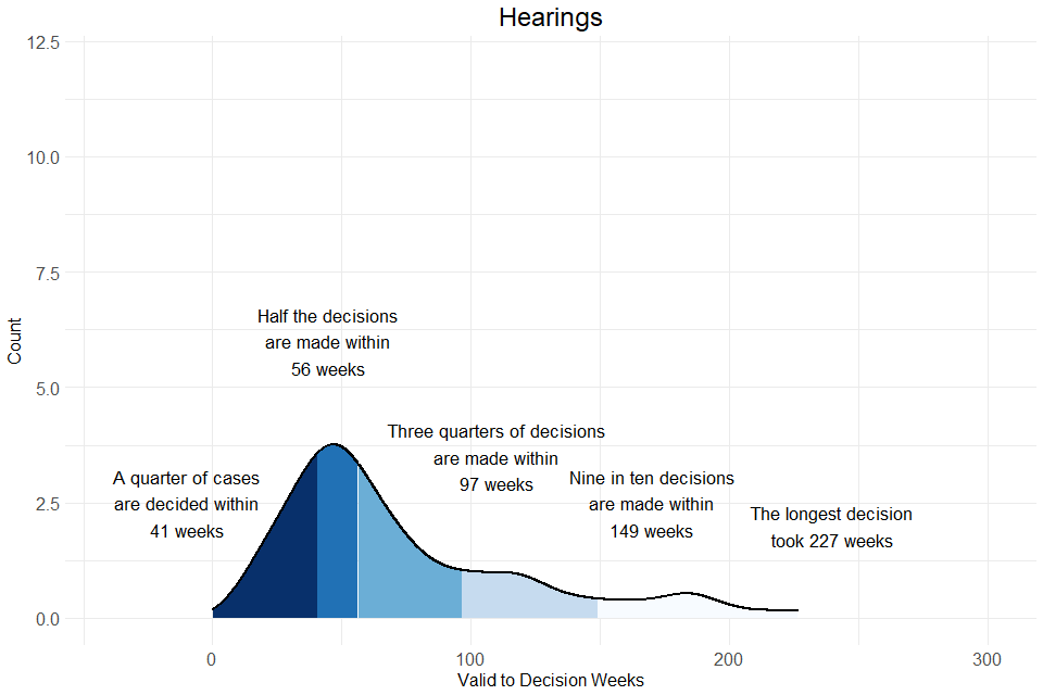 Note: The figure for “Half the decisions are made within” is the 50th percentile; this is the same as the median time to decide these cases, which is how this is presented in the Official Statistics.