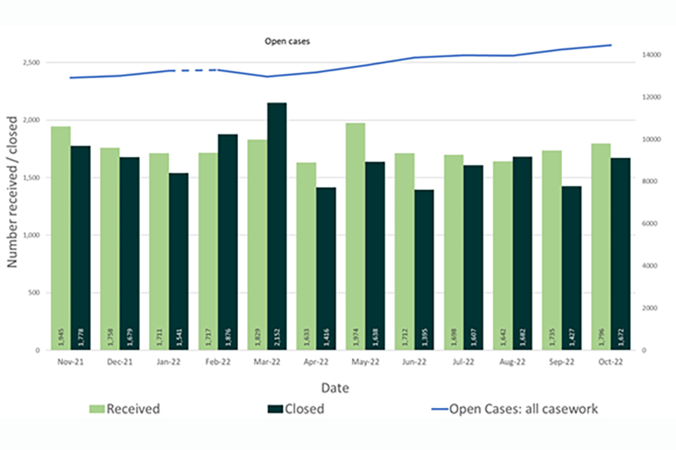 Figure 2: Number of cases received, closed and open; November 2021 to October 2022