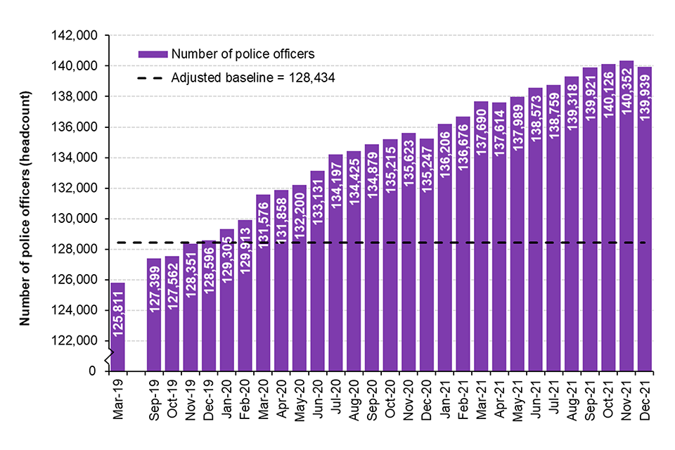 139,939 officers provisional headcount as at 31 December 2021, England and Wales