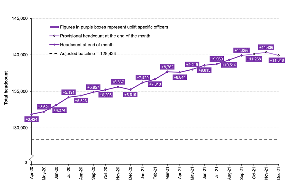 this was an increase of 11,505 officers on the adjusted baseline (see glossary) of 128,434