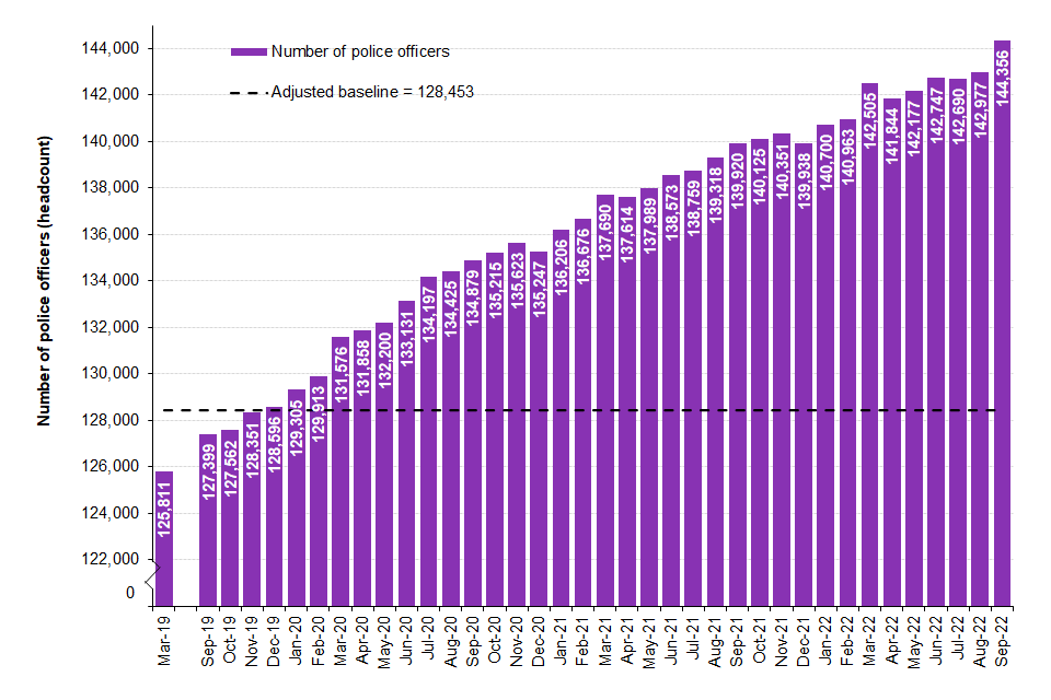 144,356 officers provisional headcount as at 30 September 2022, England and Wales