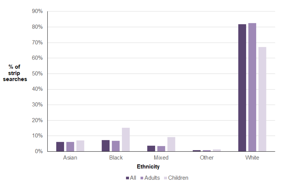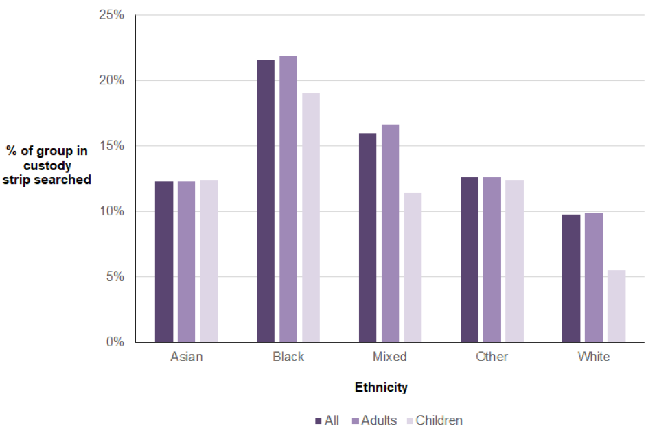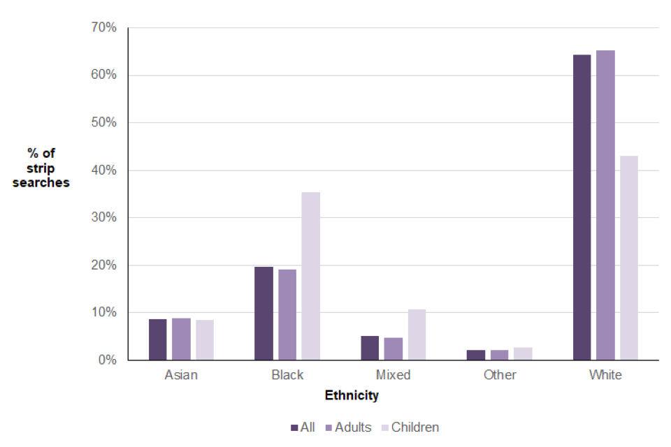 The strip searches data presented in this chapter relate to those carried out in police custody only; those carried out further to a stop and search are not currently collected by the Home Office. There are plans to start collecting this information from police forces from April 2023.