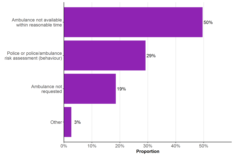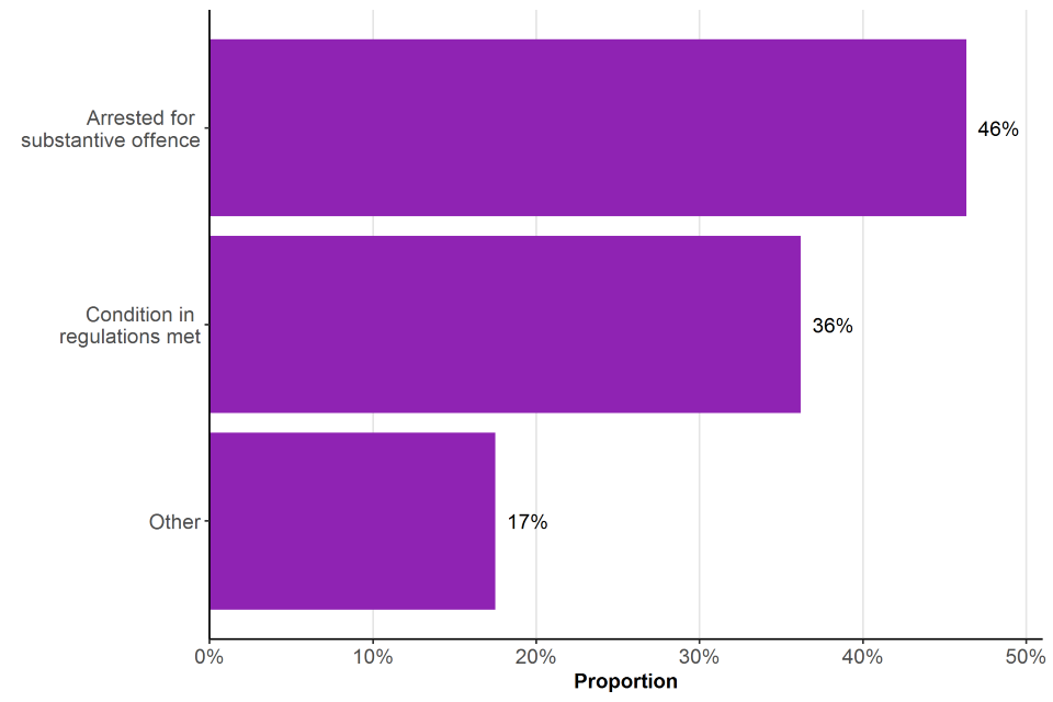 The proportion of detentions of people from Black, Asian and other minority ethnic backgrounds may reflect the large proportion of detentions accounted for by the Metropolitan Police (53%) which is a much more ethnically diverse police force area compared to other forces in England and Wales[footnote 19]. Excluding the Metropolitan Police, people from a Black, African, Caribbean or Black British backgrounds account for 7% of detentions, and those from Asian or Asian British backgrounds accounted for 5%. Additionally, some forces have used officer-defined ethnicity when recording an individual’s ethnicity instead of the self-defined ethnicity categories listed above, which may have resulted in detentions of people of mixed ethnicity being reported under different categories.